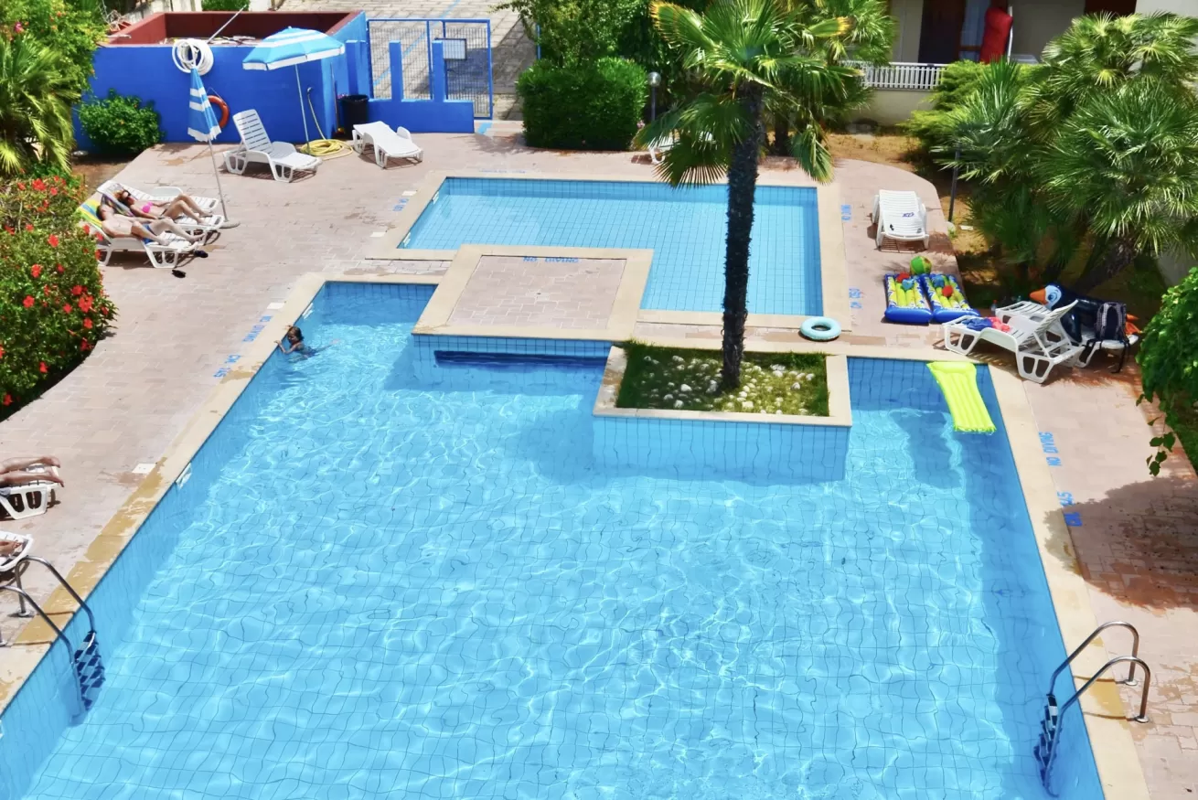 Il complesso si sviluppa su tre piani attorno alla piscina e offre appartamenti arredati in maniera semplice e funzionale, dotati di uno spazio esterno attrezzato con tavolo e sedie; dispongono di: