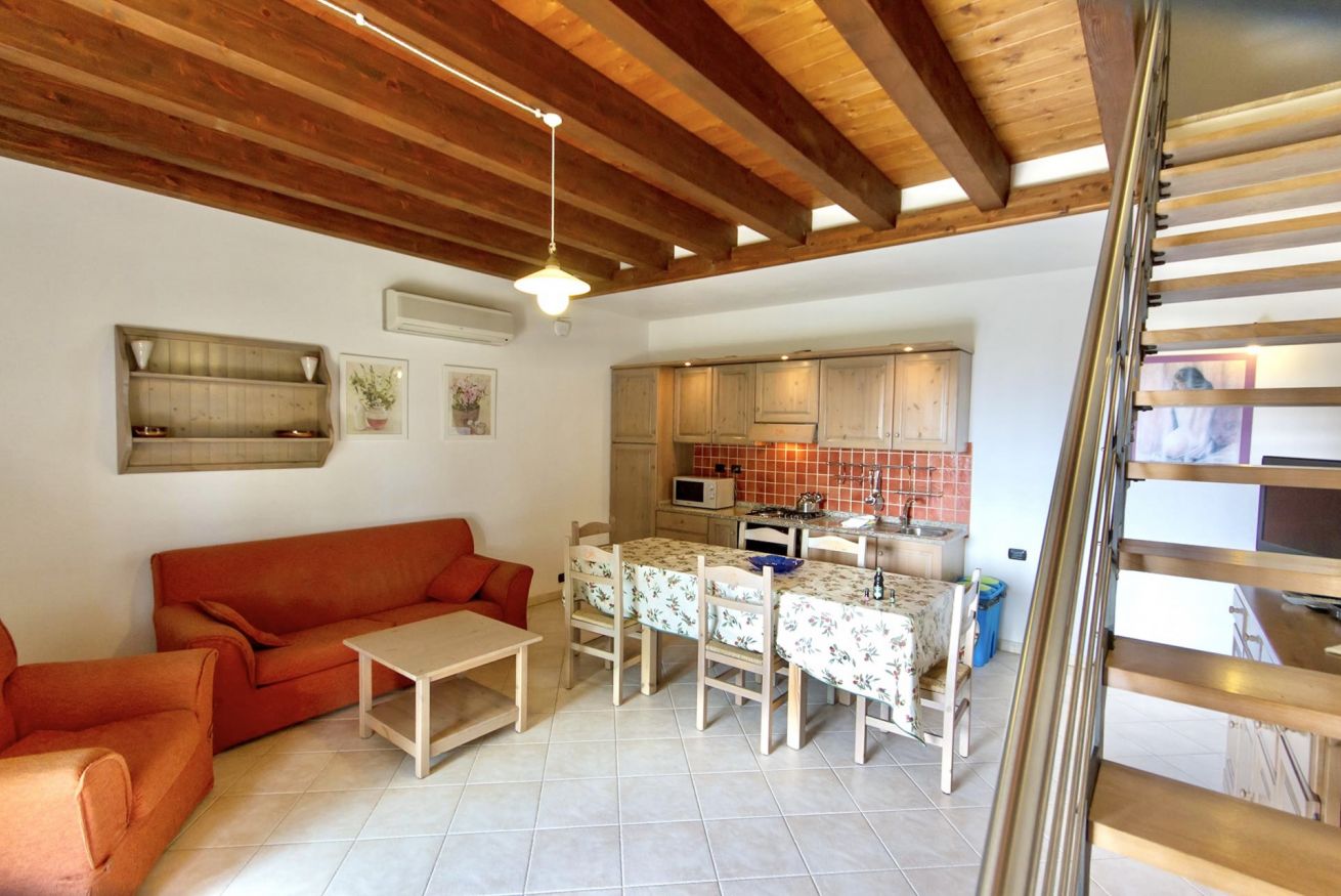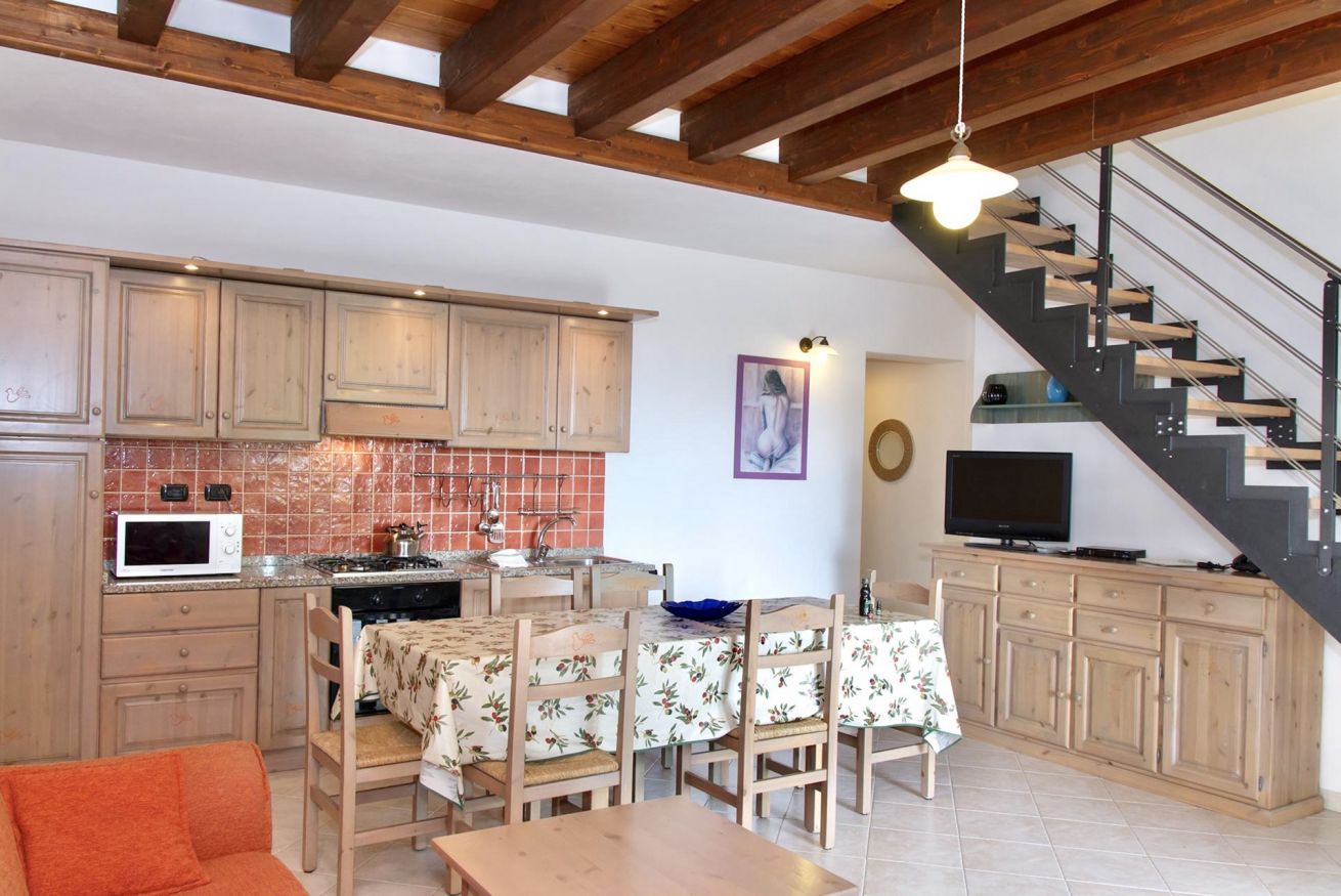 Appartamento trilocale di 60 mq posto al piano terra e organizzato su due livelli. Composto da soggiorno con con divano letto, angolo cottura attrezzato al piano d'ingresso. Due camere da letto e bagno con doccia al piano superiore.