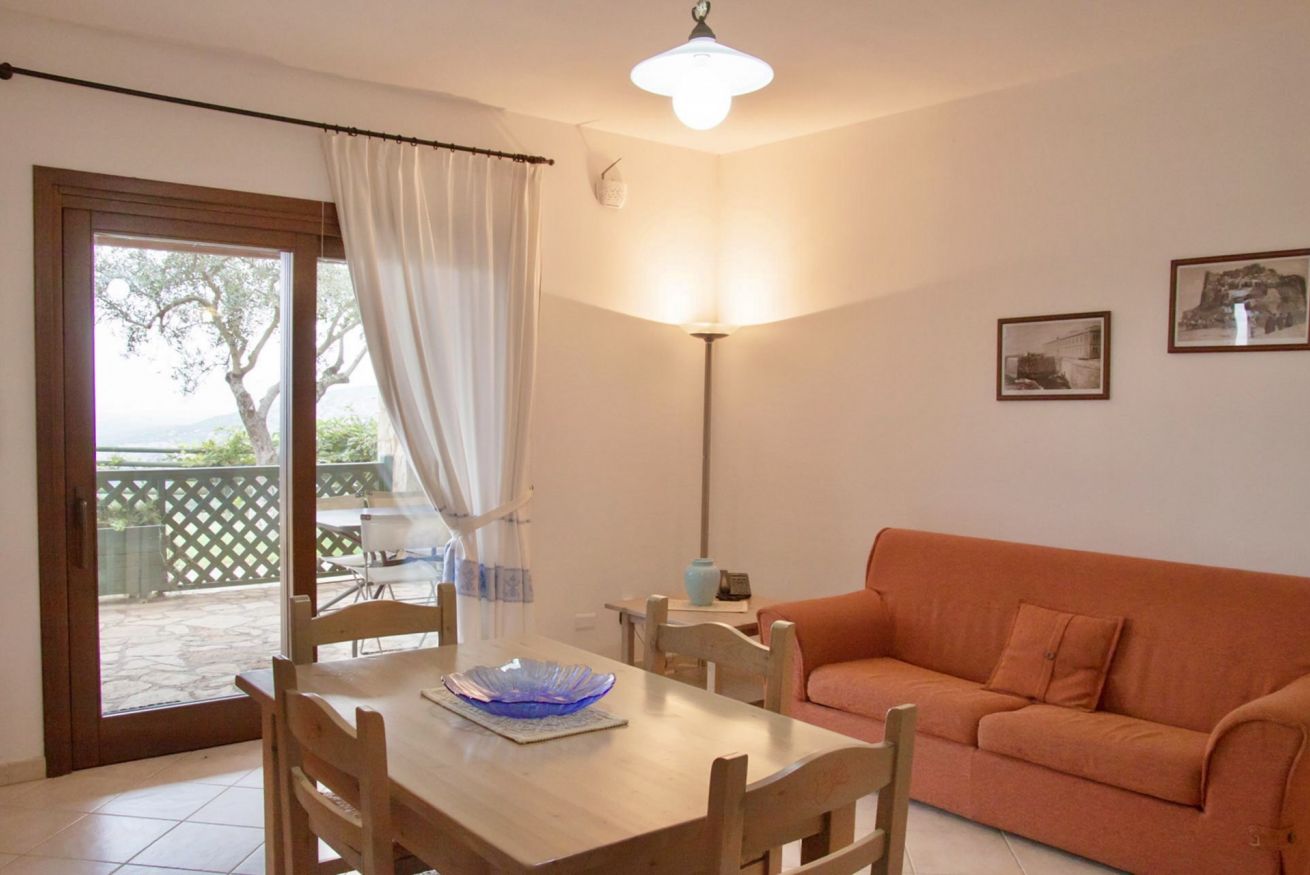 Appartamento di 65 mq al piano terra, composto da due bilocali comunicanti. Luminoso soggiorno, due camere da letto (una matrimoniale e una con due letti singoli) e due bagni. Splendida terrazza con vista.