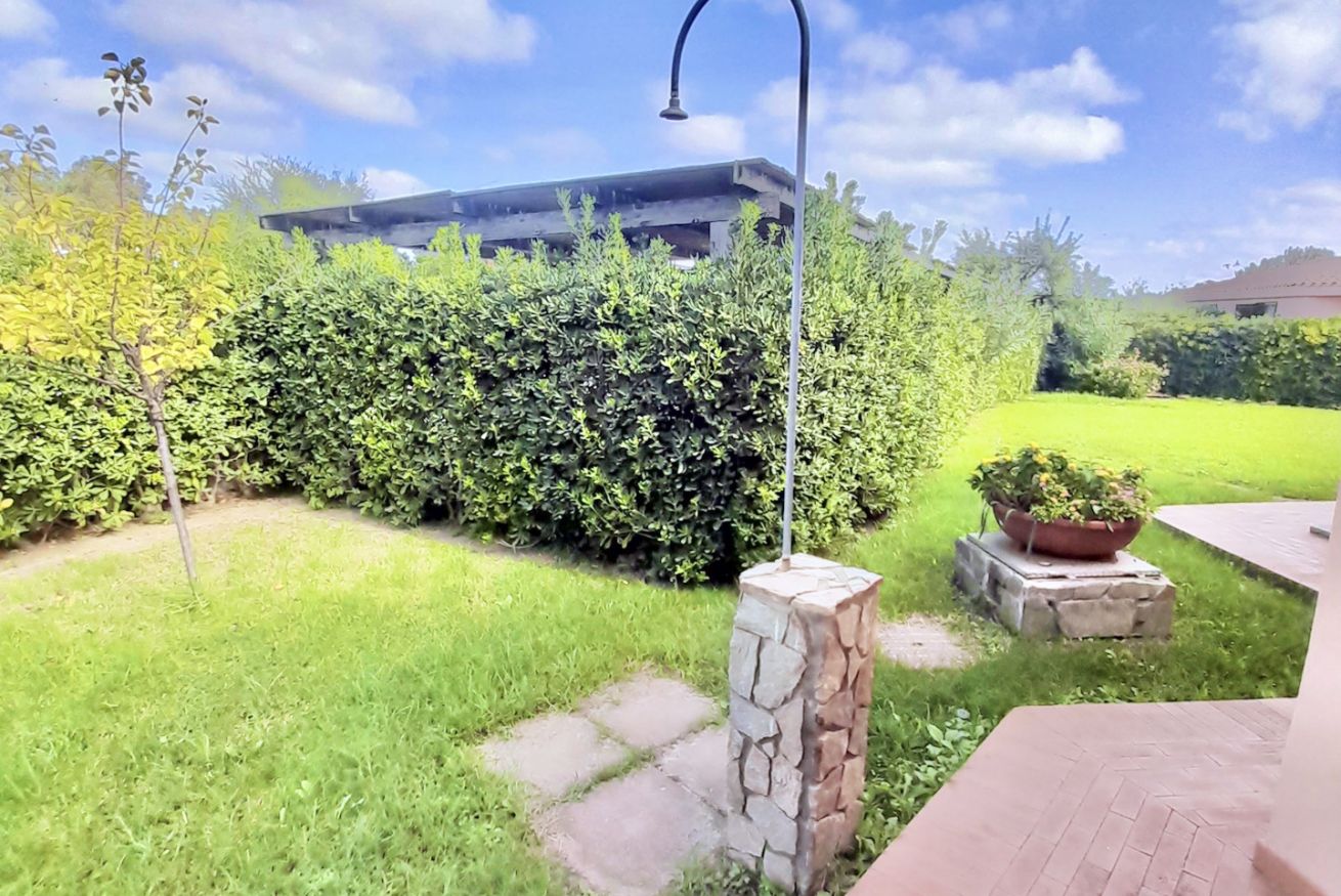 All’esterno, la villa è circondata da un ampio giardino privato e dispone di uno spazioso porticato arredato con tavolo e sedie, zona barbecue e un’area relax ideale per godere di piacevoli momenti all’aperto.