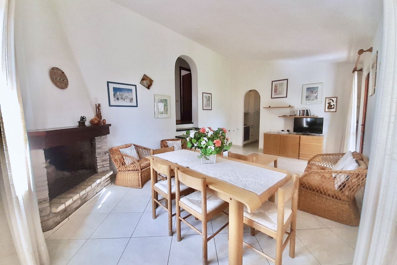 La zona giorno si compone di un ampio living con camino, zona pranzo e angolo cottura separato.