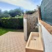 All'esterno, un ampio loggiato coperto e arredato con tavolo e sedie si affaccia sul giardino perimetrale completamente recintato, ideale per godere di piacevoli momenti di relax in totale privacy.