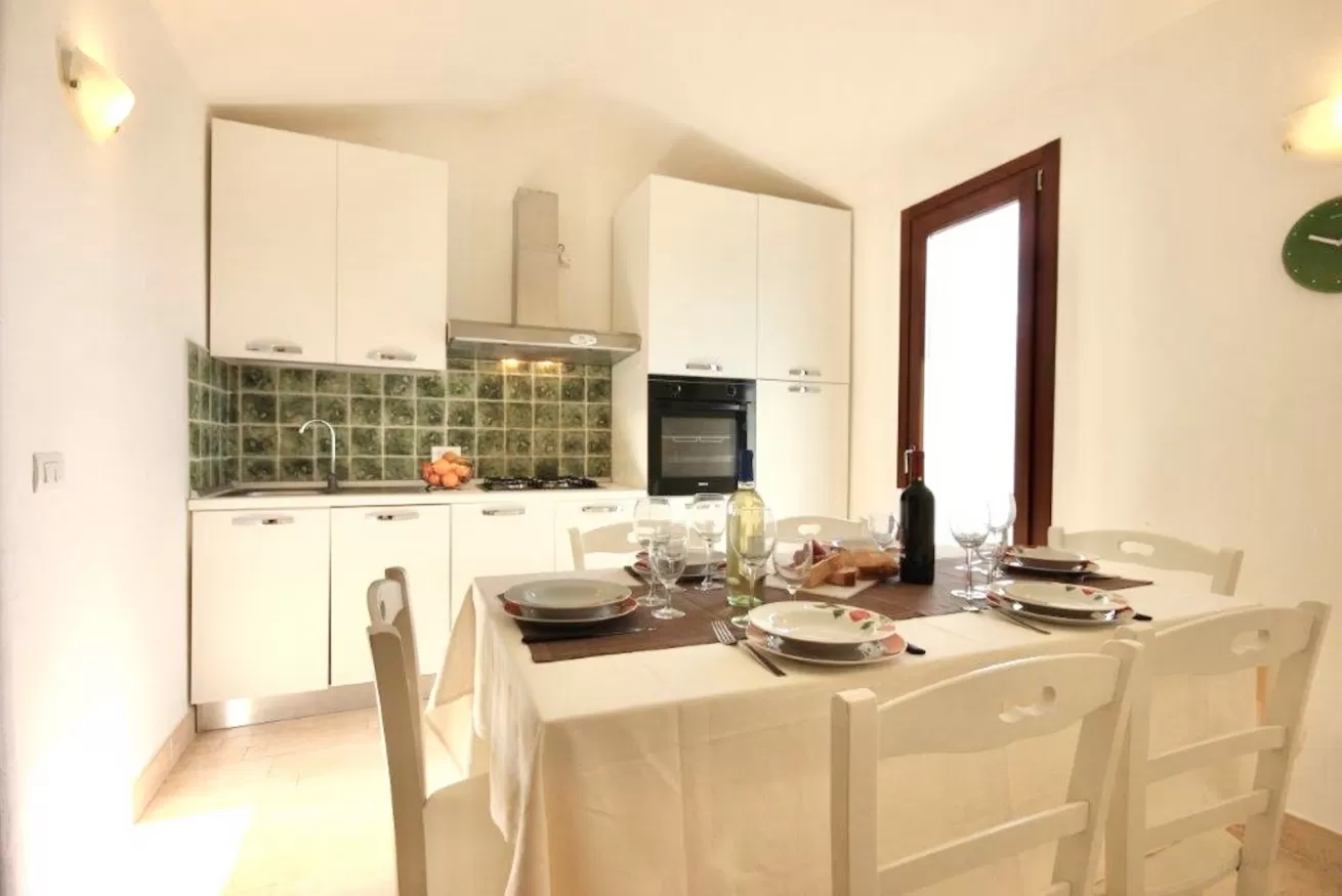 Deliziosa Villa con aria condizionata di circa 75 mq composta da soggiorno con divani e tv sat , angolo cottura con fornelli a gas, frigorifero, forno, lavastoviglie e microonde.