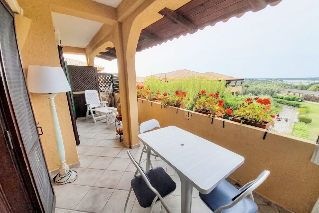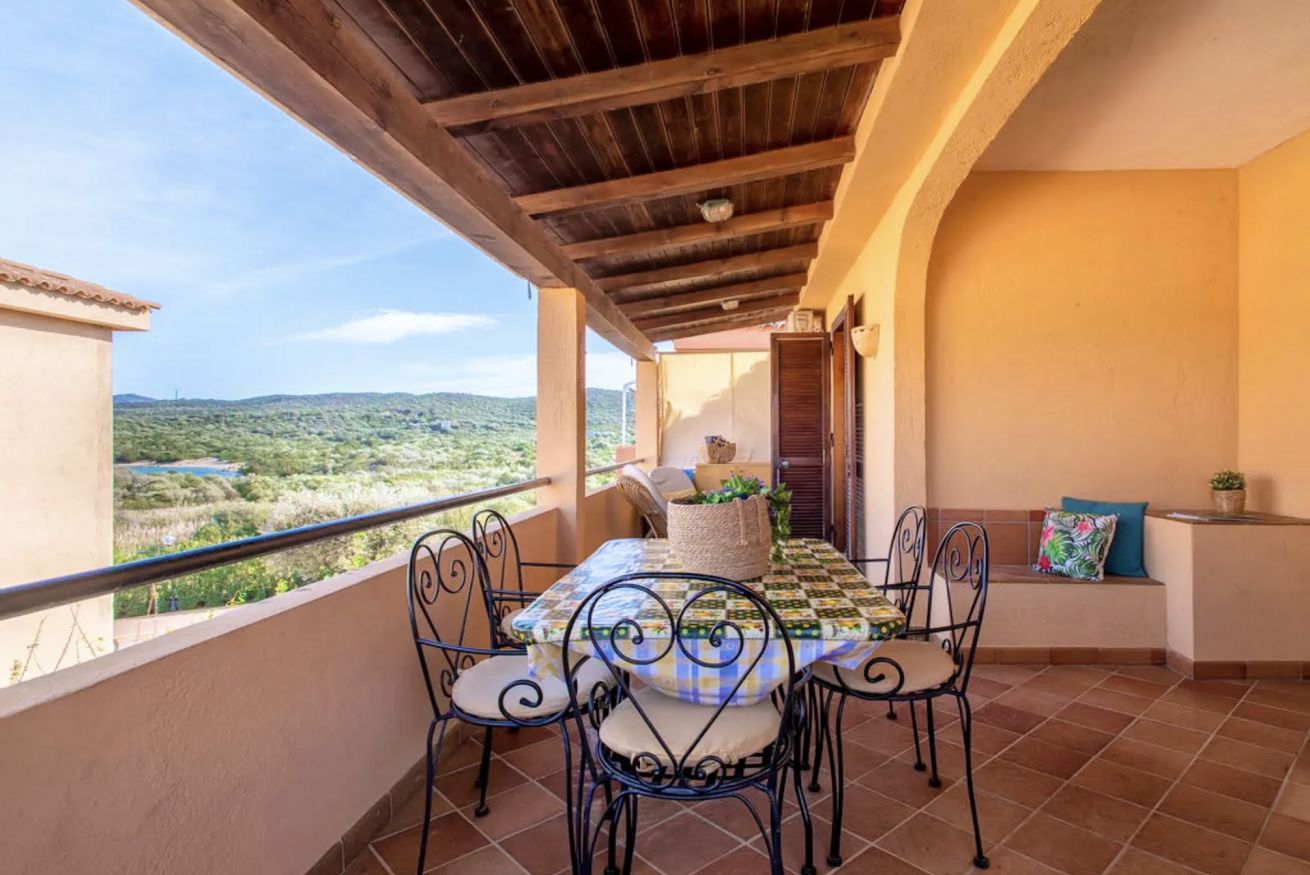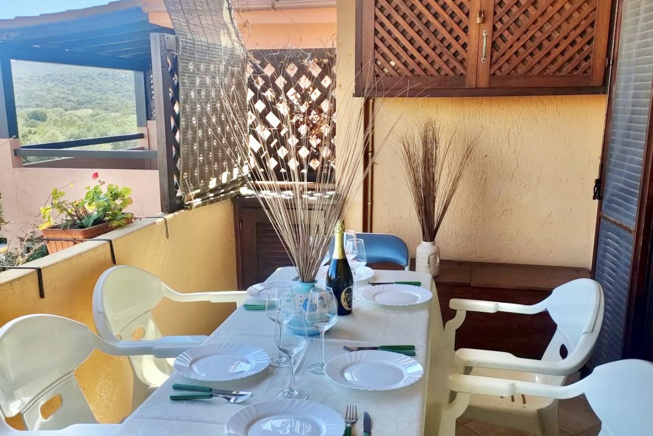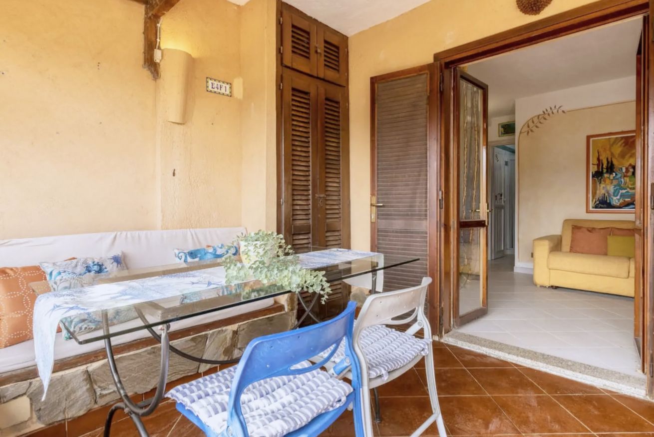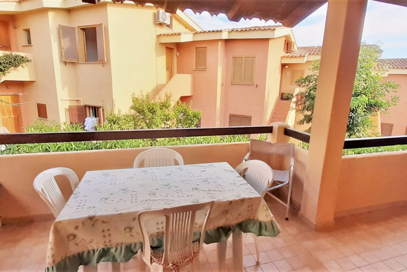 L’appartamento si trova al primo piano con veranda arredata con tavolo e sedie