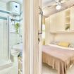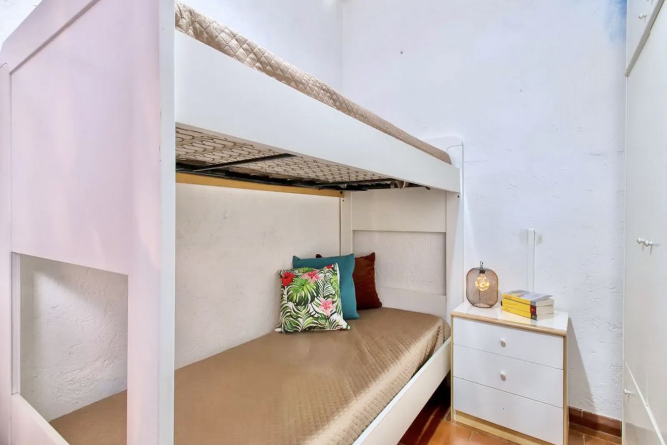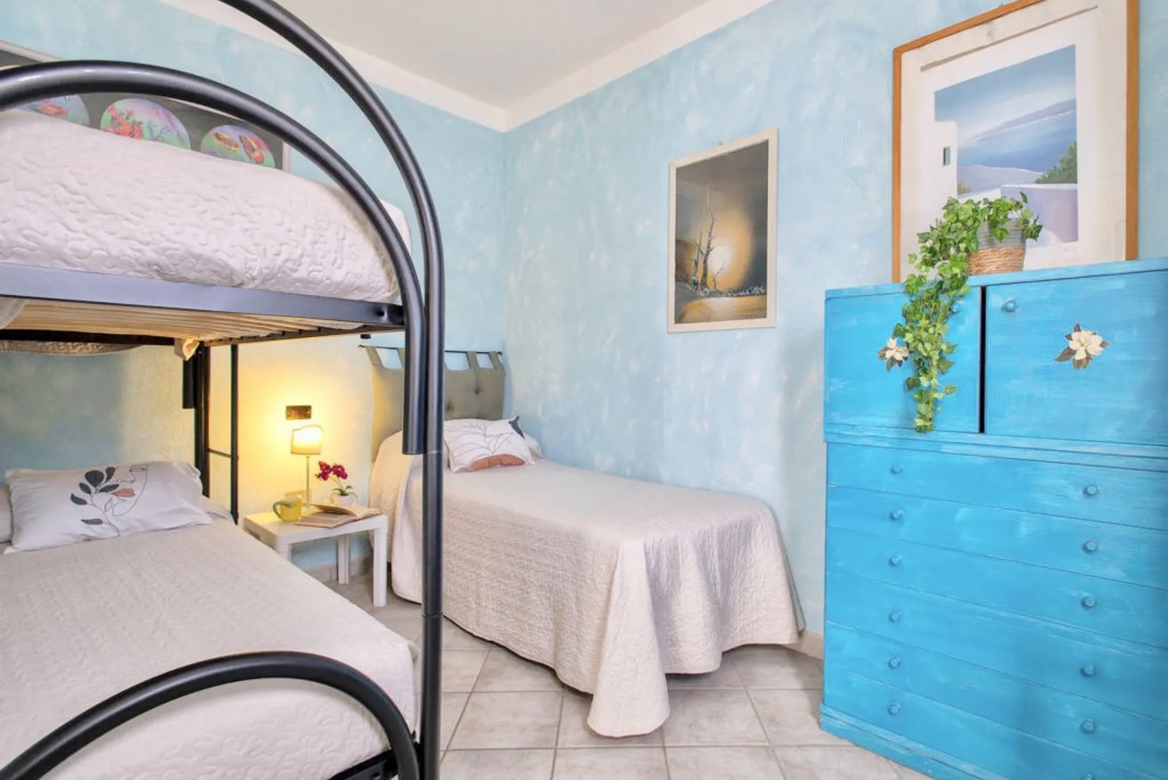 Composto da soggiorno con angolo cottura attrezzato, divano letto matrimoniale, bagno con doccia e piccola cameretta con letti singoli a muro.