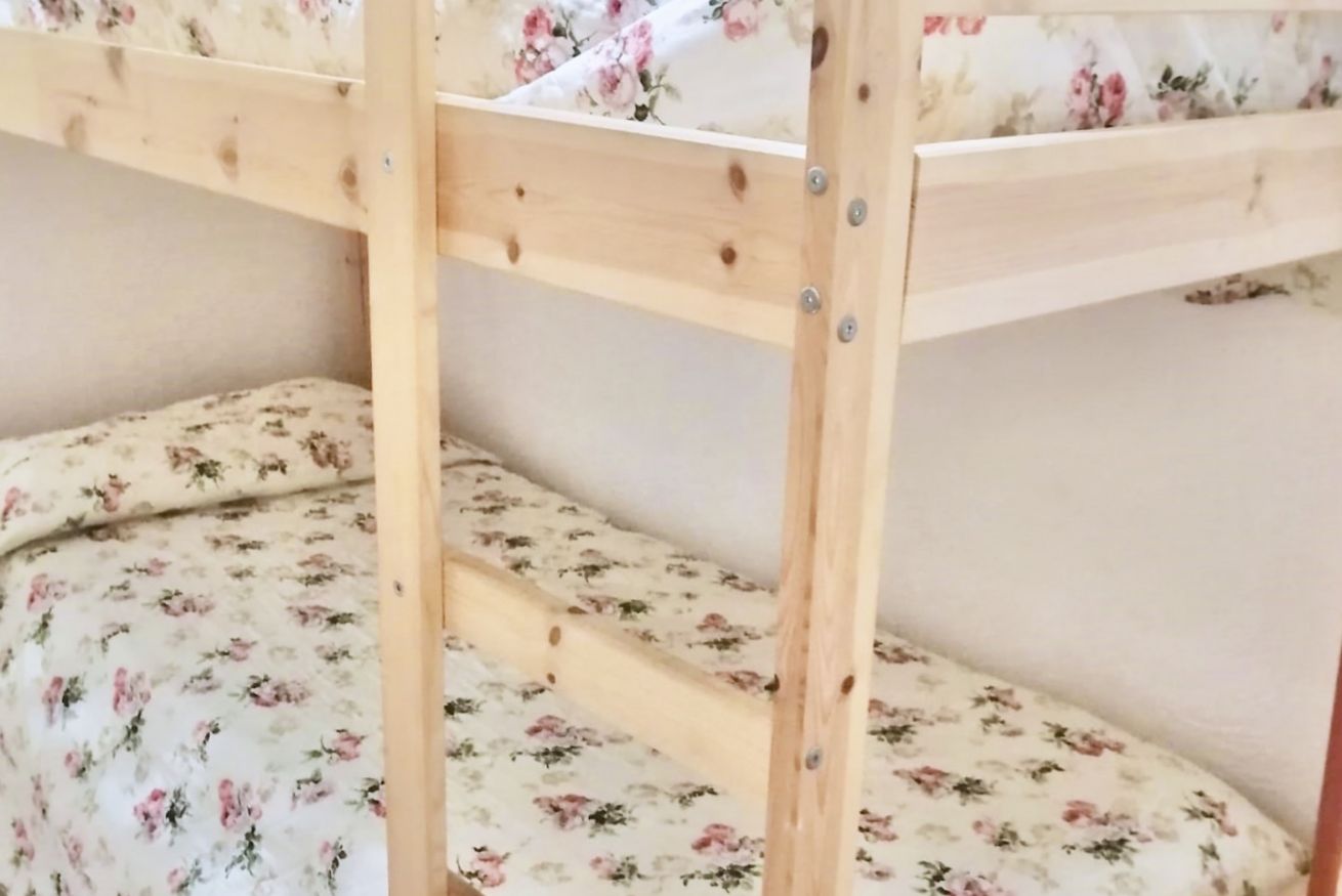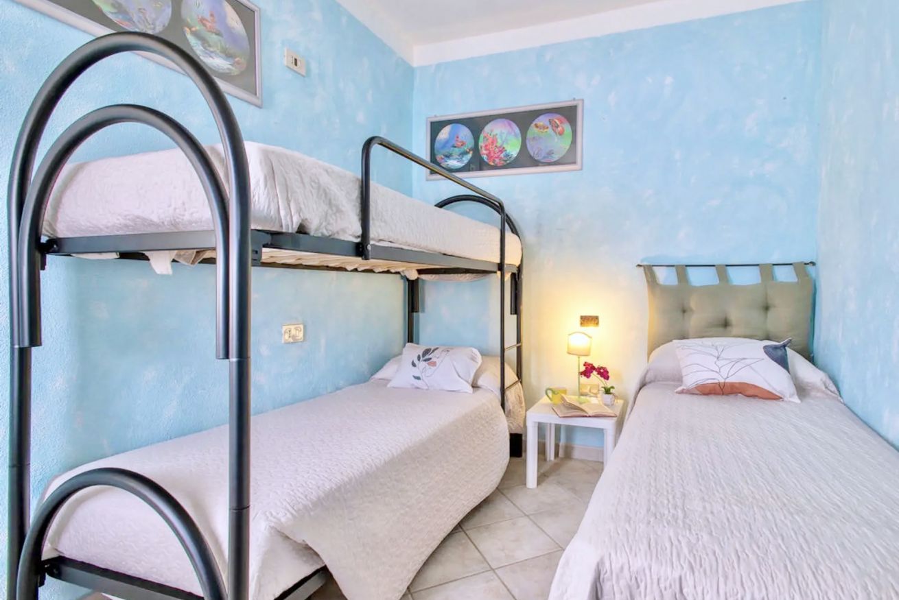 Composto da soggiorno con angolo cottura attrezzato, camera matrimoniale, seconda camera da letto con letto a castello ed un letto singolo e bagno con doccia.
