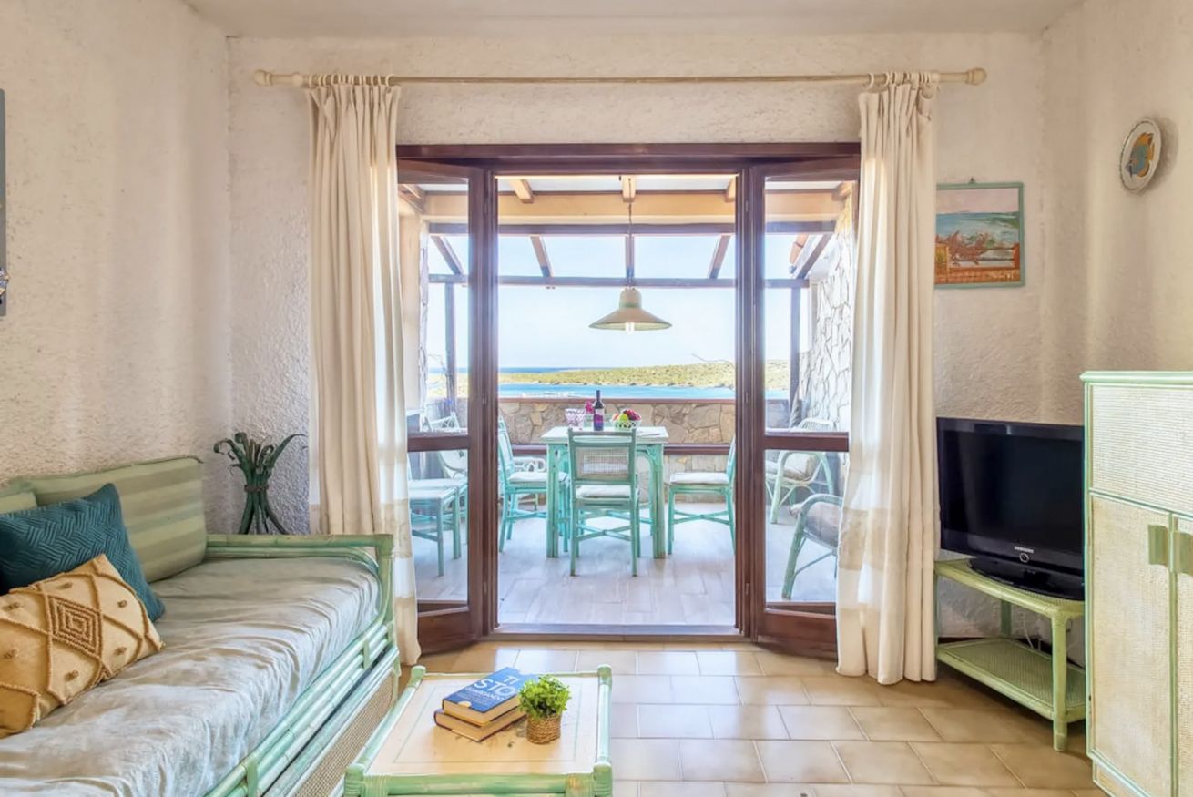 Composto da soggiorno con divano letto matrimoniale, angolo cottura attrezzato, due camere matrimoniali e bagno con doccia. Veranda con vista mare arredata con tavolo e sedie.