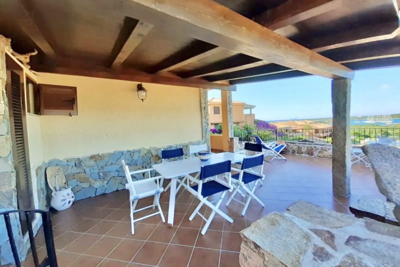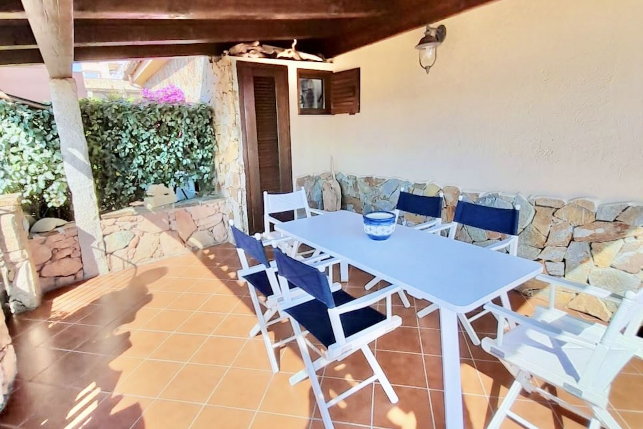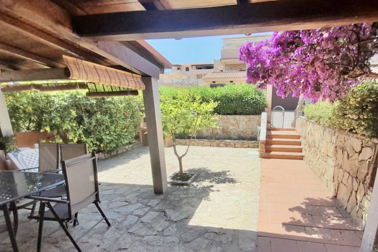 L’appartamento si trova al piano terreno con ampia veranda e giardino arredati con tavolo, sedie e divanetto vista mare