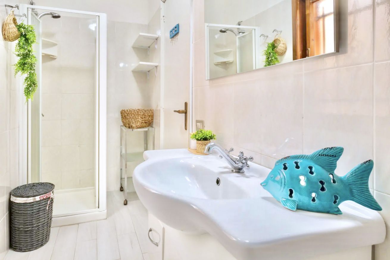 L’appartamento con vista mare dalla terrazza e' ubicato al primo piano con veranda vivibile arredata con tavolo e sedie
