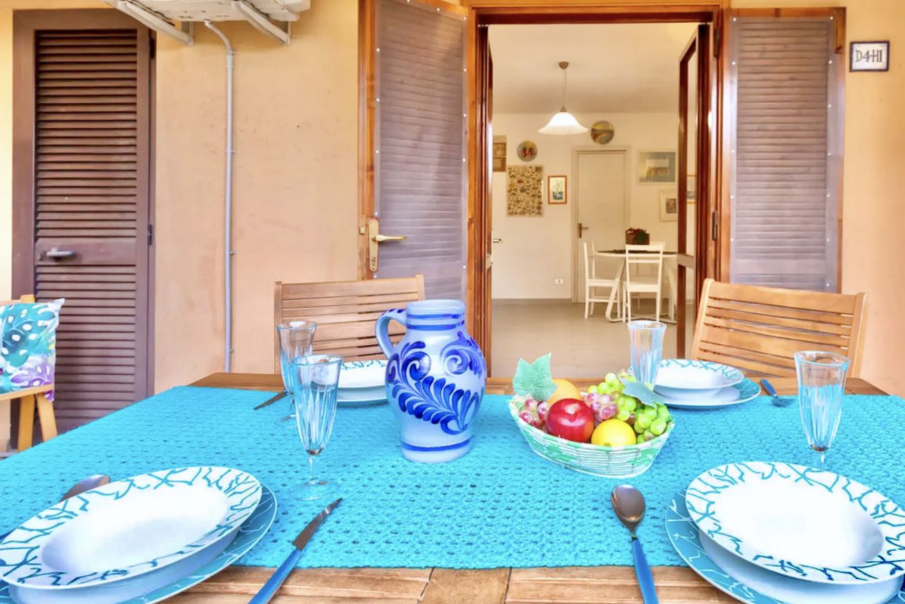 L’appartamento si trova al piano terra arricchito di patio esterno arredato con tavolo e sedie e giardino privato