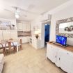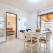 Composto da soggiorno con divano letto matrimoniale, angolo cottura attrezzato, due camere matrimoniali e bagno con doccia. Piccola veranda arredata con tavolo e sedie.