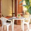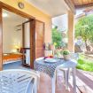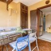 L’appartamento si trova al piano terra con Patio arredato veranda con tavolo e sedie e ampio giardino