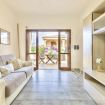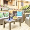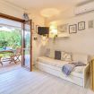 L’appartamento e' ubicato al piano terra con patio, divani e giardino recintato per piacevoli momenti all’aperto.