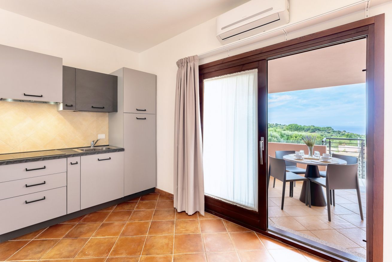 Gli appartamenti tutti con ingresso indipendente, ben arredati sono disposti a piano terra con veranda e piccolo giardino oppure al primo piano con balcone coperto e vista mare, sono dotati di: