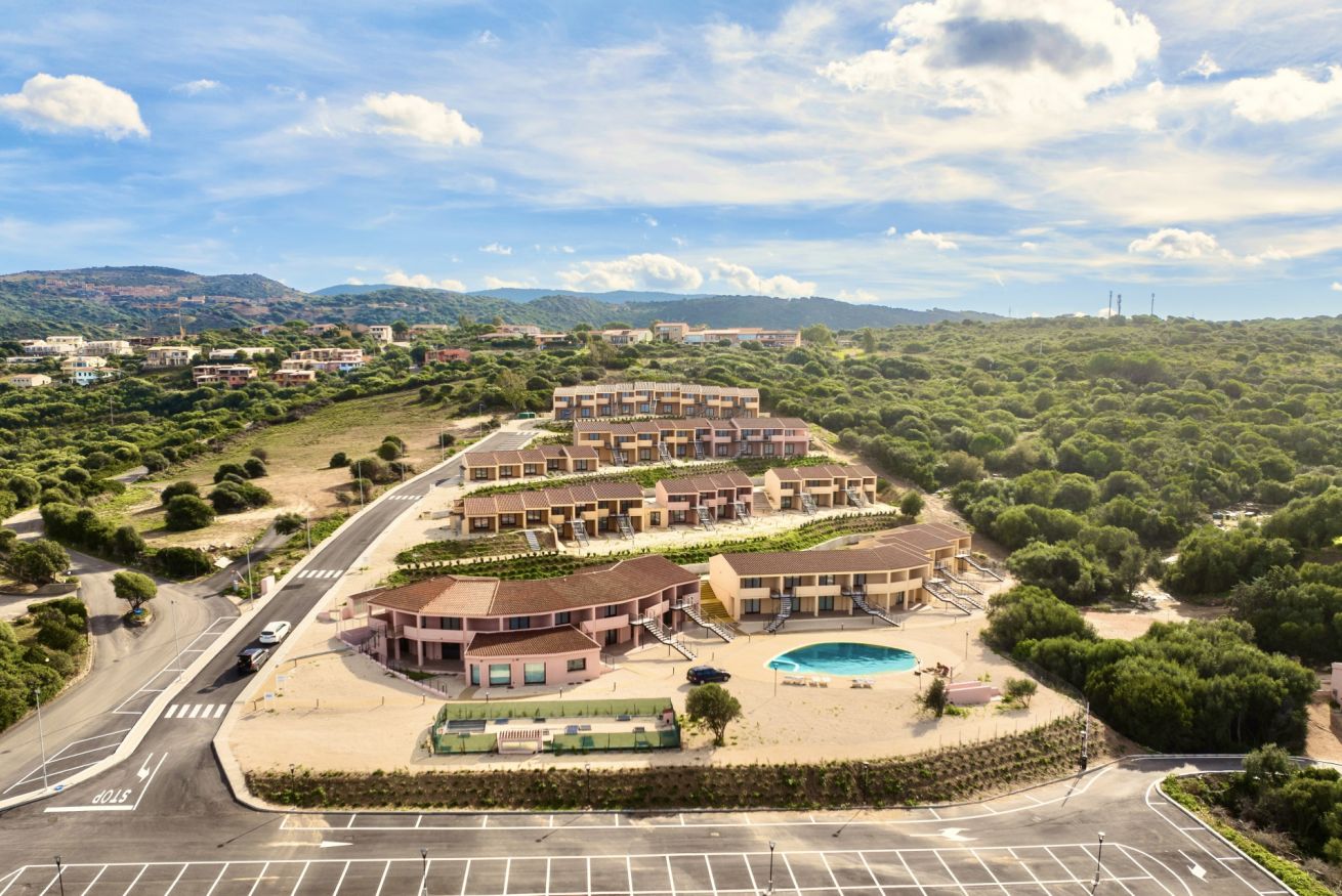 Il residence Rocce Rosse è ubicato in posizione panoramica sul Golfo dell'Asinara e sul borgo di Isola Rossa, a 80 km da Olbia e da Alghero e a 2500 metri dalla spiaggia più vicina.