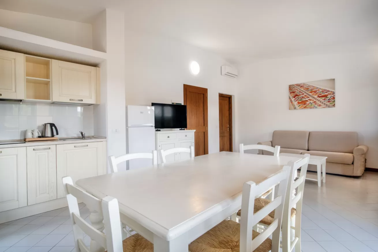 Inseriti nel curato giardino e dotati di ingresso indipendente, gli accoglienti appartamenti possono essere situati al piano terra o al primo piano. Caratterizzati da ambienti ampi e luminosi, sono arredati con cura in stile semplice e funzionale. Ogni alloggio è impreziosito da uno spazio esterno attrezzato, ideale per momenti di relax all’aperto; dispongono inoltre di: