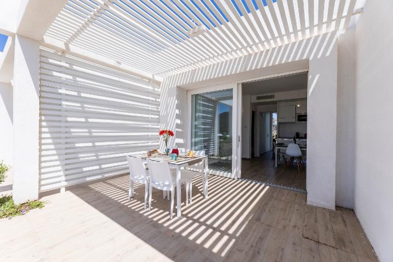 Ogni appartamento dispone di aria condizionata, TV, Wi-Fi (ad uso parziale) , rilevatore di fumo, biancheria da letto e da bagno, e di un patio o balcone attrezzato , perfetto per momenti di relax all’aperto, magari sorseggiando un caffè al mattino o godendo della brezza mediterranea.