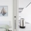 All’interno, un soggiorno luminoso con angolo cottura ti permette di organizzare i pasti in totale autonomia, grazie a una piastra a induzione a 4 fuochi, frigorifero, microonde, tostapane, bollitore, macchina da caffè a capsule (capsule acquistabili in reception) e lavastoviglie .