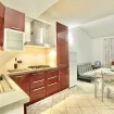 E'composta al piano terreno da soggiorno con divano letto matrimoniale, lato cottura attrezzato, frigorifero e televisore.