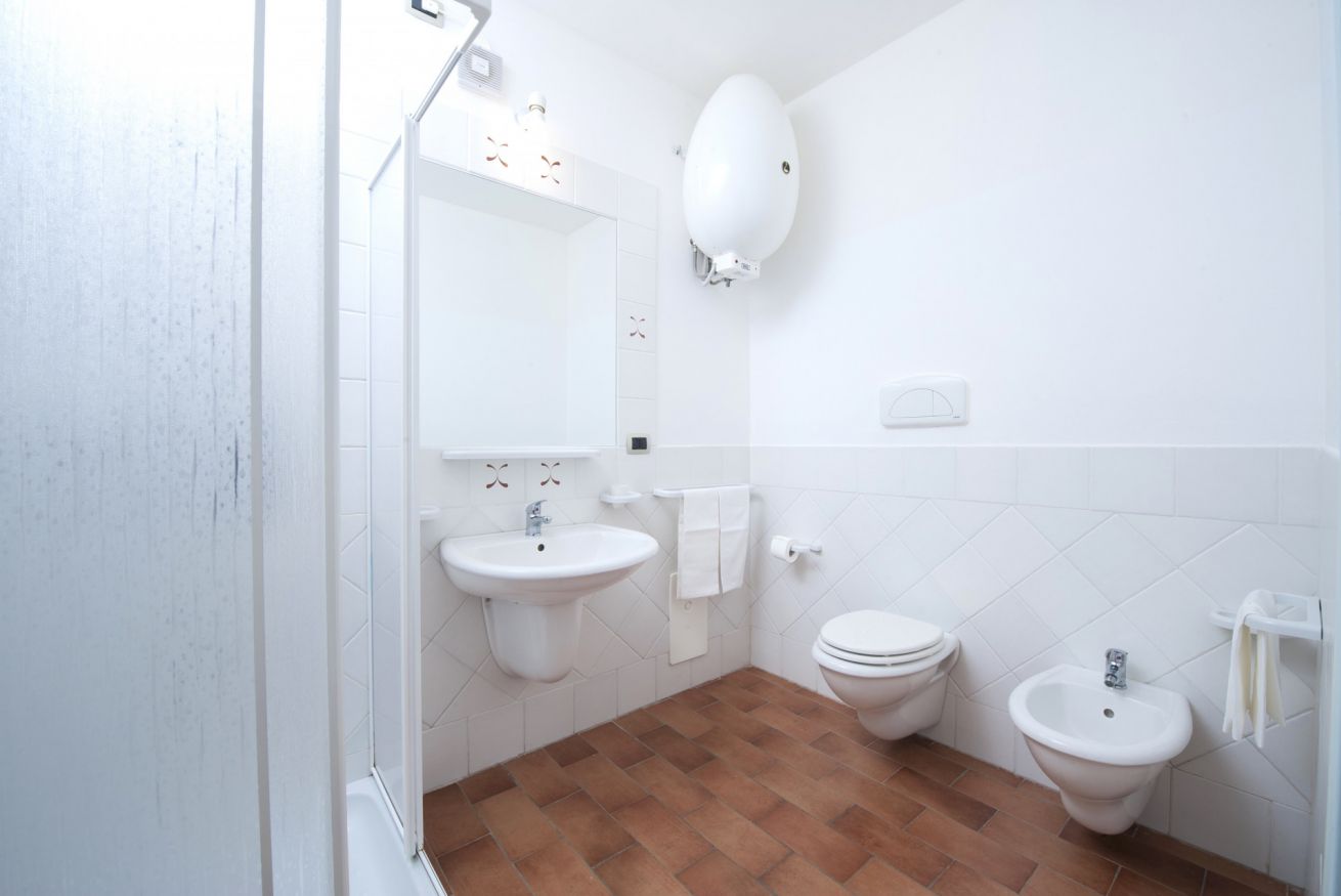 Appartamento bilocale al piano terreno o al primo piano di circa 37 mq composto da soggiorno con angolo cottura attrezzato, divano letto singolo e letto estraibile. Ampia camera con due letti matrimoniali da una piazza e mezzo e  bagno con doccia.