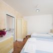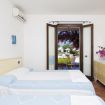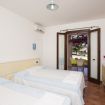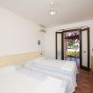 Appartamento trilocale al piano terreno di circa 55 mq, composto da un monolocale e un bilocale collegati da porta comunicante. Offre soggiorno con angolo cottura e divano letto con due letti singoli estraibili, camera matrimoniale e bagno con doccia. Ulteriore camera matrimoniale con bagno privato e angolo cottura. Ampia veranda attrezzata con tavolo e sedie.